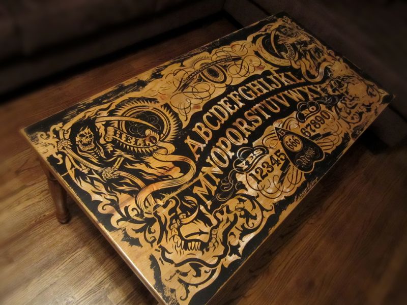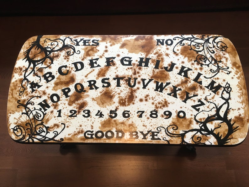 Ouija Board Coffee Table / Custom Made Ouija Board Spirit Board Coffee Table Haunted Etsy : Here's what it looked like starting out with just some pieces of wood.. Sadly this set of coffee table, rug and chairs isn't a real thing. Ouija boards freak some people out. I wanted a cool, unique coffee table for my house, but couldn't find anything that i liked in my price range. Folk art halloween ouija spirit board. You can't expect whatever entity you're addressing to respond should youn't ask properly.